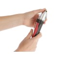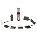 Akumulátorový strihací strojček, pre detailný strih, výborné strihacie vlastnosti, výkonná dobíjacia batéria Ni-Mh 1200 mAh, až 90 minút na jedno nabitie, strihanie aj s nabíjacím káblom , so 4mi nadstavcami (3, 6, 9, 12 mm) , 5- šírka strihu 38 mm.
