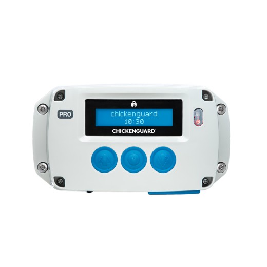 Chicken Guard Pro má veľmi výkonný motor , ktorý dokáže zdvihnúť až 2 kg , takže je ideálny pre otváranie väčších a ťažších dvierok. Súčasťou zariadenia je aj bezkontaktný snímač polohy dvierok. Prístroj je vybavený veľmi odolným puzdrom , a tak zaisťuje perfektnú ochranu pri extrémnych poveternostných podmienkach až do teploty -20 °C. Všetky potrebné informácie o nastavení sú prehľadne znázornené na dvojriadkovom LCD displeji . LCD displej prejde po určitej dobe nečinnosti do "režimu spánku", aby sa zvýšila životnosť displeja. Zariadenie znovu "prebudíte" stlačením tlačidla MENU. Pre nastavovanie programov slúžia extra veľké tlačidlá , aby bolo možné ich ovládať aj v rukaviciach.