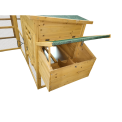 Predstavujeme priestranný maxi kurník v prírodnej farbe, vyrobený z kvalitného jedľového dreva . Navrhnutý pre 8-10 sliepočiek podľa ich veľkosti, tento kurník s odolnou drevenou konštrukciou poskytuje optimálne pohodlie pre vaše sliepočky. Kurník je veľmi priestranný a výbeh je oddelený od vnútorných priestorov posuvnými dvierkami s madlom umožňujúcim otváranie zvonku bez nutnosti vstupu do kurníka. Kryt strechy je osadený kvalitnou šindľovou krytinou . Táto verzia je vybavená znáškovými boxmi na oboch stranách .