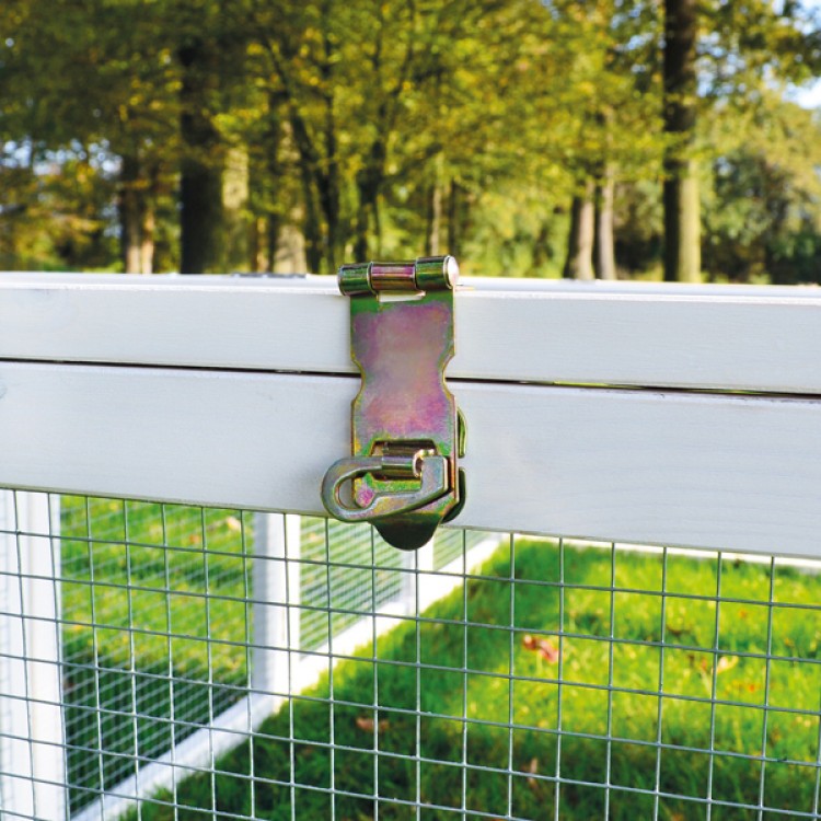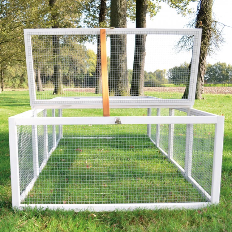 Drevený výbeh je stabilný a špičkovo spracovaný. Vyrábame ho v 2 farbách - v červenkastom tóne dreva av bielej farbe . Farby sú šetrné k životnému prostrediu a úplne neškodné pre zvieratá. Drôt má veľkosť ôk 1,2 x 1,2 cm a hrúbku 1,1 mm . Ponúka preto optimálnu ochranu, aby váš králik nemohol utiecť.