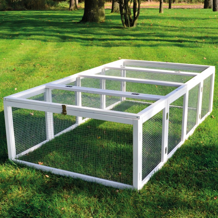Čo môže byť krajšieho, než vidieť svoje vlastné králiky šťastne poskakovať na záhrade? Praktický výbeh to umožňuje. Výbeh umiestnite na mieste, aby umožňoval voľný pohyb králikom, morčatám alebo zajacom .