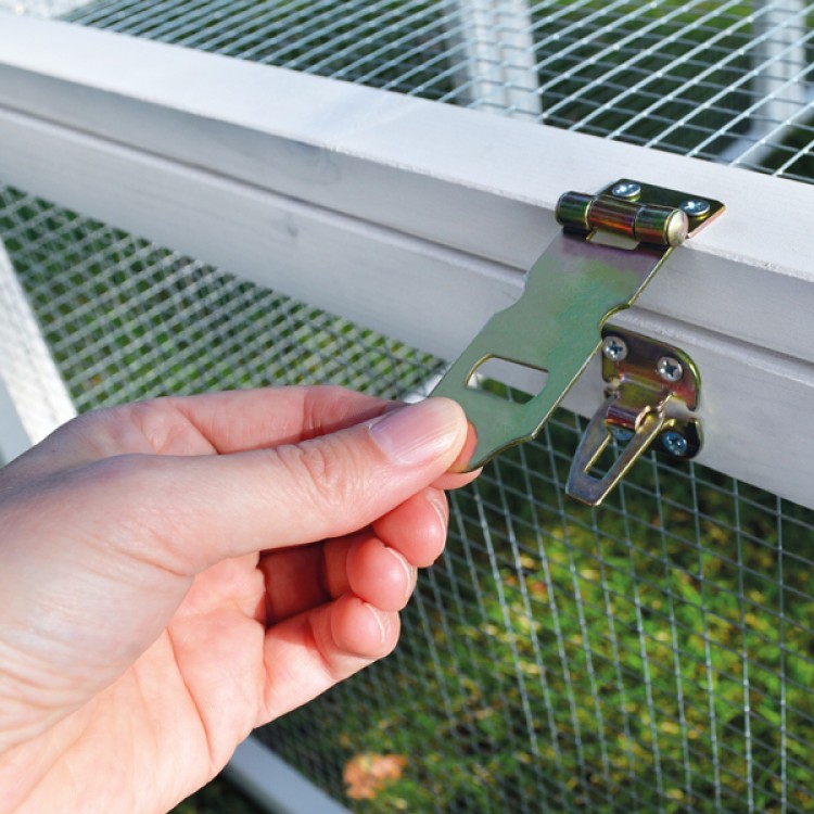 Výstup je možné otvoriť na oboch horných priečnych stranách pomocou klapky. Priestor je ľahko prístupný, zvieratá je možné ľahko vybrať a rýchlo a prakticky pridať jedlo, vodu a občerstvenie. Výbeh je dlhý 181 cm, široký 100 cm a vysoký 48 cm . Každé pole má rozmer 45 x 100 cm .