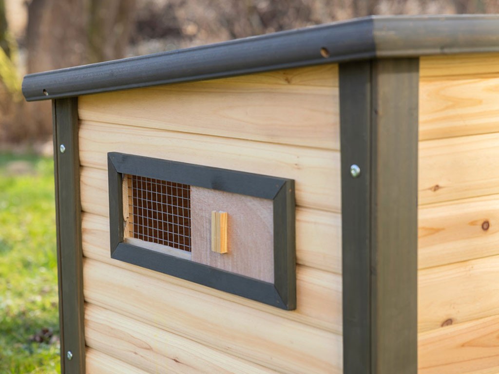 Čistenie kačača zvládnete behom pár minút pomocou praktického výsuvného pozinkovaného trusníka zo strany kačača. Cirkuláciu vzduchu v kačníku zaisťuje bočné posuvné okienko.