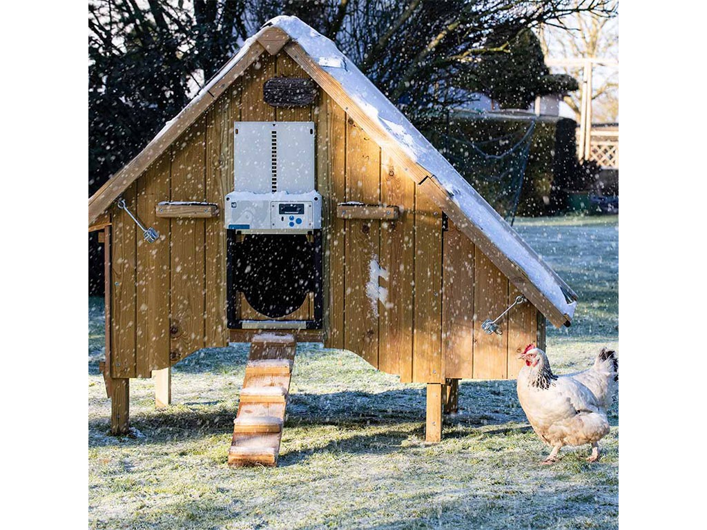 - Funkcia zimného režimu - systém kurníka je vybavený možnosťou špeciálneho zimného režimu, ktorý zvýši výkon motora a zaistí tak funkčnosť aj v mrazivých dňoch.
