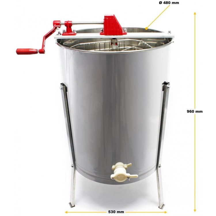 Tento medomet má pevnú konštrukciu a je veľmi robustný. Stojí na 3 nohách. Všetky časti, ktoré prichádzajú do styku s medom, sú vyrobené z nerezovej ocele a sú schválené pre potraviny.