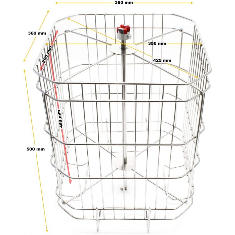 Otočný kôš umožňuje vložiť 4 rámčeky. Je možné vložiť nielen rámy pre rozmer Zander, ale aj rámy pre normy DIN. Maximálny rozmer rámčekov: 440x250 mm.