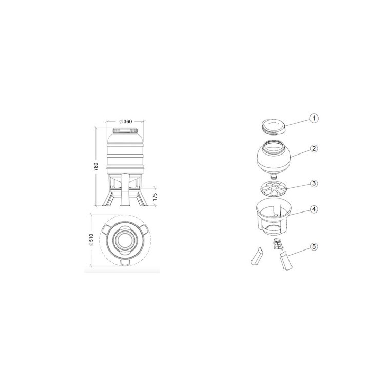 - Rozmery: ØxV 510 x 780 mm , výška nožičiek 175 mm