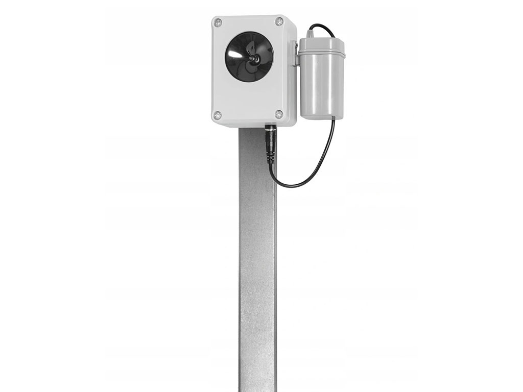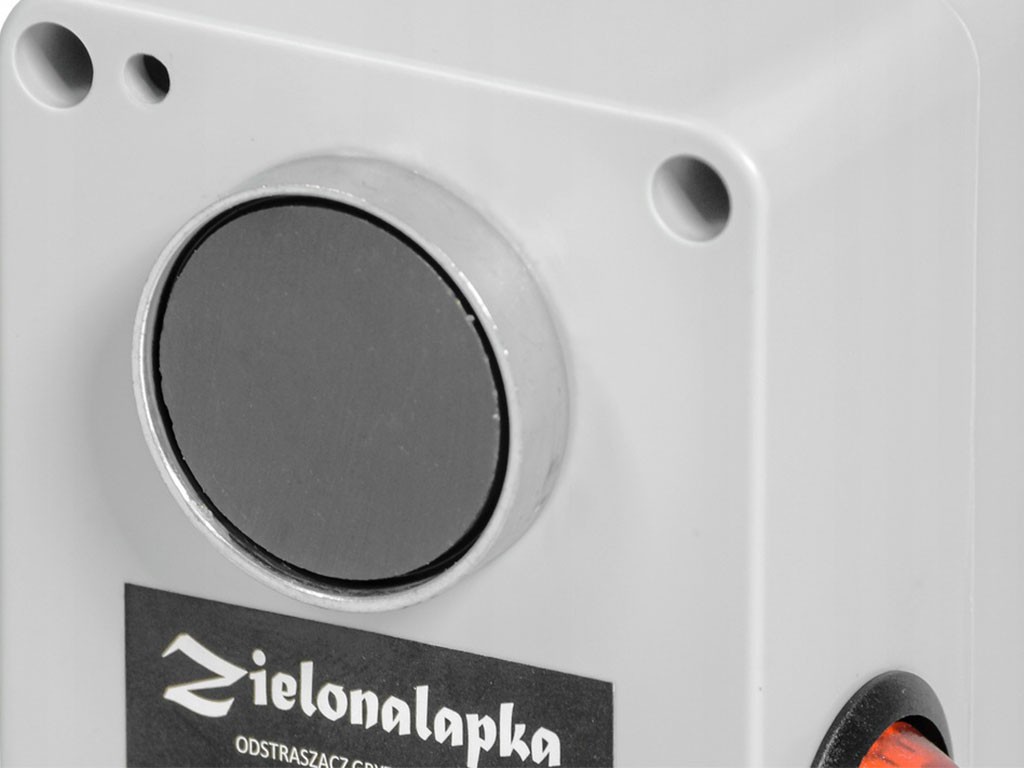 Ultrazvukový odpudzovač zveri, bezpečný pre človeka i domáce zvieratá, vhodný na plašenie kún a hlodavcov, vo vnútorných aj vonkajších priestoroch, s odolným vodotesným krytom, na uchytenie cez magnetický držiak, s rozsahom tónu v uhle až 180°, s automatickou zmenou kmitočtu, s dosahom batéria, s 1x 50mm membránovým reproduktorom, s rozmermi 85x85x55mm.