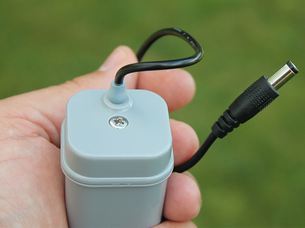 Zariadenie je napájané na 4xAA batérie (nie sú súčasťou balenia). Zariadenie je vybavené praktickým prepínačom umiestneným na bočnej strane, ktorý vám umožní ovládať jeho prevádzku podľa vašich potrieb. Odporúčame použitie alkalických batérií , s výdržou minimálne 6 týždňov pri neustálej prevádzke.