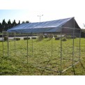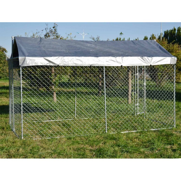 Koterec má podlahovú plochu 4x2,3 metra a je vysoký 1,83 metra. Kotec pre psov vďaka robustnému drôtenému plotu boduje svojou stabilitou a uzamykateľné dvere zaisťujú ľahký prístup. Aby vaše zviera nebolo vystavené dažďu ani priamemu slnku, má psie búda vode a UV žiareniu odolnú strechu, ktorá pokrýva celý povrch koterca.