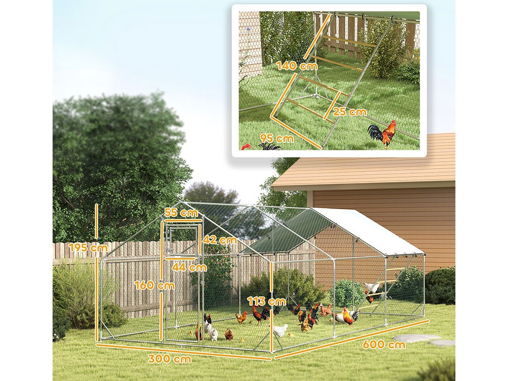 Výbeh pre hydinu s bidlom PAWHUT D51-436V05SR, 3x6x1, 95m