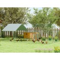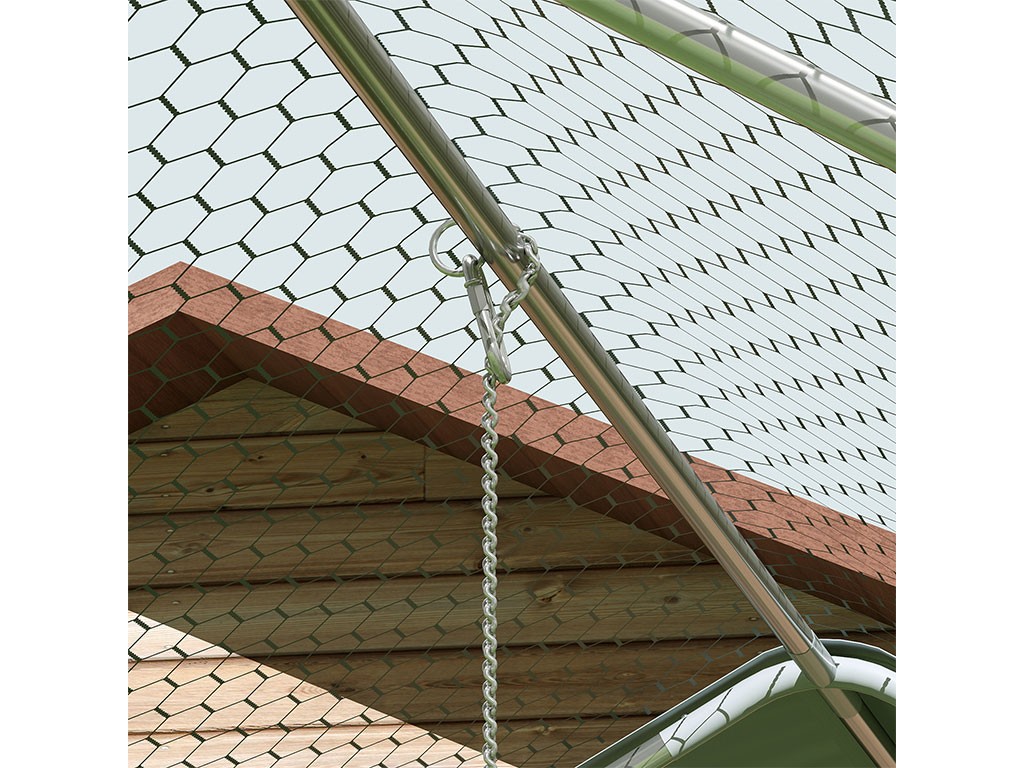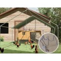 Výbeh pre hydinu pozinkovaný, vhodný pre 18-24 sliepok, priestranný s rozlohou 18 m 2 , odolné šesťhranné pletivo, ochranná plachta pred UV žiarením a dažďom, praktické kŕmne dvierka, závesná kŕmna reťaz a viacúrovňové bidlo , 0 veľká cm.