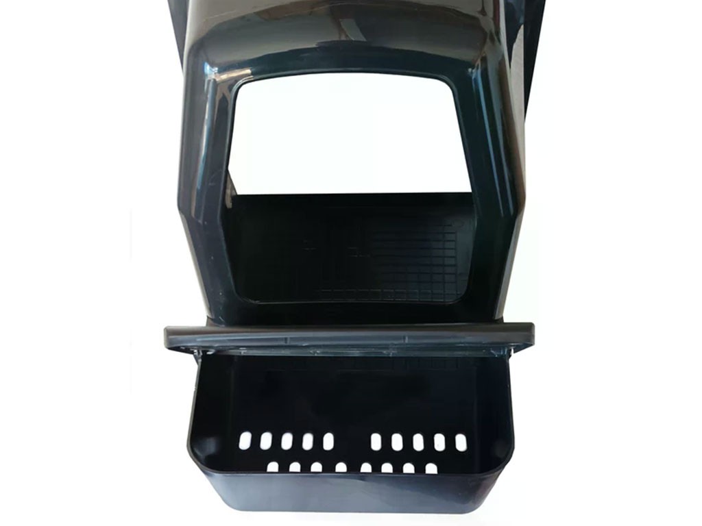 Znáškové hniezdo pre sliepky so zberným košíkom na vajcia , kapacita až pre 5 nosníc na jednu kukaň, dno hniezda je spádované, vajcia sa samo odkotúľa do košíka s kapacitou až na 10 vajec , vyrobené z plastu, farba čierna . Jednoduché pripevnenie na stenu, veľmi ľahká údržba čistoty, rozmery 44cm dĺžka (28cm bez košíka) x 37cm šírka x 50cm výška.