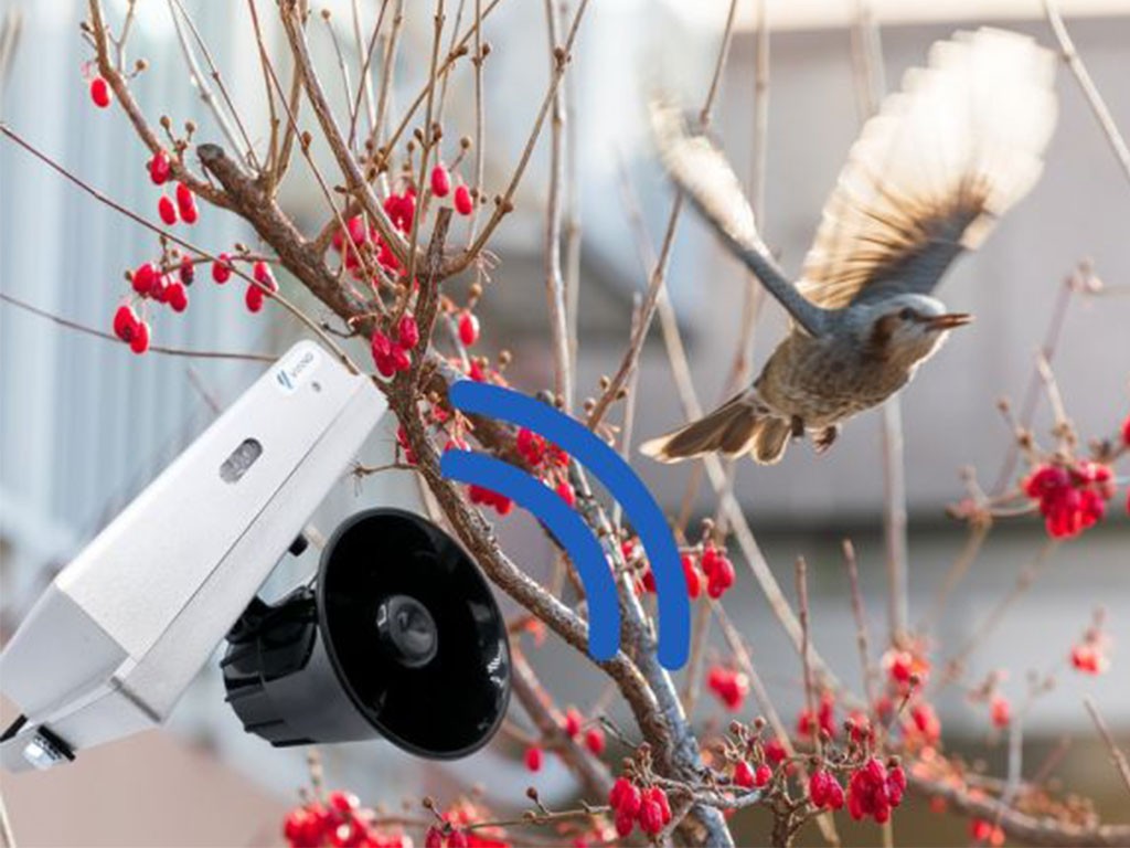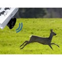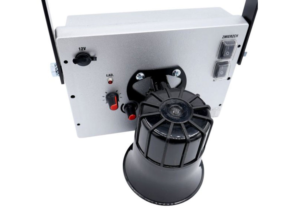 Zvukový odpudzovač divokej zveri, napájanie 230 V alebo 12 V batérie, chráni plochu až 7000 m 2 , reprodukuje veľmi hlasné zvuky, vstavaný výkonový zosilňovač, radarový senzor pohybu, s ochranou IP44, súmrakový režim, diaľkové ovládanie zariadenia, rôzne režimy prevádzky, rozmery 2.